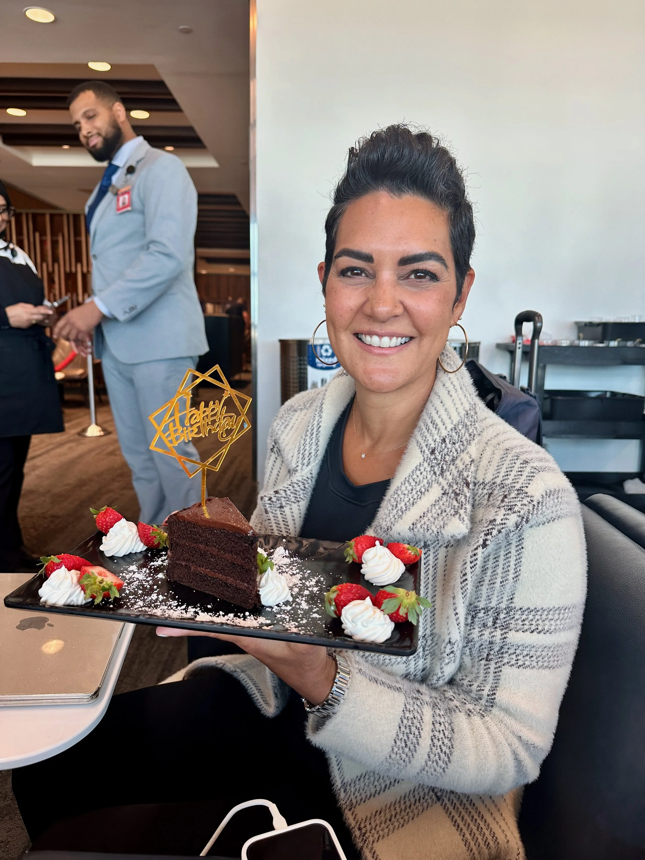 Our journey began before we even took off. At the Delta Lounge, the staff surprised me with a birthday cake and a full rendition of Happy Birthday. As if that wasn’t enough, our Delta status worked its magic and we were upgraded to first class. Champagne before wheels up? Yes, please. It was already shaping up to be a special trip.